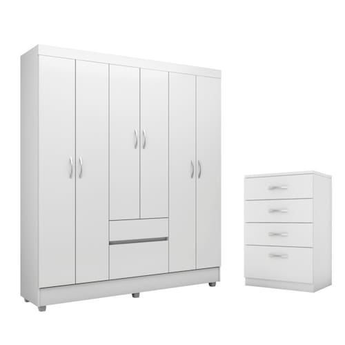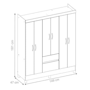 Esse guarda roupa foi pensado em quem não dispensa um bom espaço para pendurar suas roupas. Conta com seis portas com dobradiças metálicas, possibilitando o fácil acesso a qualquer seção do produto.