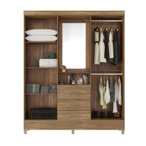 Esse guarda roupa se destaca pela ótima configuração interna, e pelo espelho central, dando um toque requintado para o ambiente