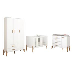Conjunto Quarto Infantil Completo Iris 100% MDF-Roupeiro-Cômoda-Berço-Moveis Estrela - Branco