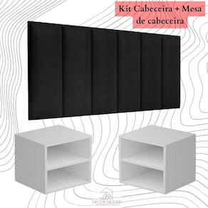 Conjunto Quarto Mesas De Cabeceira + Cabeceira De Cama 1,40 Kit cabeceira estofada 1,40cm casal + 2 mesa de cabeceira ecos Itens inclusos: 1 Cabeceira 1,40cm casal 2 Mesa de Cabeceira Ecos Branco 1 Kit de instalação de ambas as peças 1 Manual de instruções A cabeceira estofada traz conforto térmico, acústico e beleza para seu quarto, sendo hoje o item de decoração mais indicados por 9 em cada 10 profissionais de decoração.Seu estofado é macio ao toque e ideal para quem gosta de ler antes de dormir ou tomar café da manhã na cama. Além disso, este tecido é resistente ao desgaste e a outros fatores, como à luz e a umidade. Dimensões Cabeceira 140cm Altura 54 cmLargura 140 cmProfundidade 5 cm Mesa de Cabeceira Ecos suspenso em MDF de primeira qualidade com resistência e acabamento de alta durabilidade. Este modelo é ideal para organização de uma maneira moderna e funcional, trazendo um ar de sofisticação e elegância para qualquer decoração de vários tipos de ambientes. Sugestões: quartos, salas, cozinhas, escritórios etc. Especificações: Confeccionado em MDF 15mm de primeira qualidade com resistência e acabamento de alta durabilidade. Produto100% MDF MDF Branco Medidas: 30cm Altura30cm Profundidade30cm LarguraSuporta até 30kg.