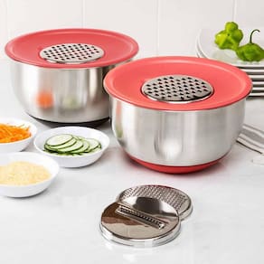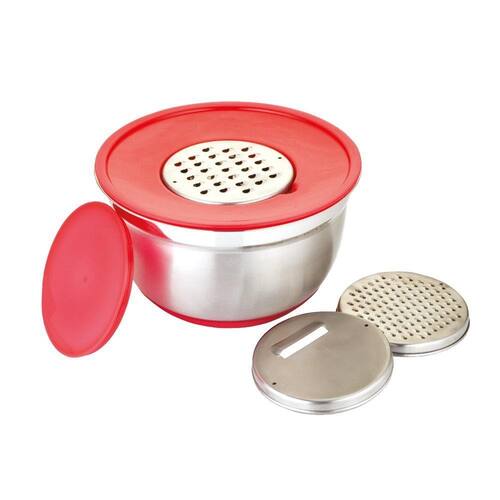 São 3 tipos de lâminas perfeitas para fatiar, ralar grosso, ralar fino e raspar. Além disso, possui uma base antiderrapante em silicone que proporciona mais praticidade ao cozinhar, pois evita que o produto deslize e que o alimento vaze durante o preparo. O bowl, produzido em inox, não transfere cor ou sabor ao alimento, deixando seu prato do jeito que você sempre quis: uma delícia. Auxilia no preparo de diversas receitas, facilitando a sua vida na cozinha e deixando os seus pratos ainda mais bonitos e saborosos. Perfeito para ralar vegetais e frutas, este produto ainda te proporciona misturar o molho na salada apenas com o seu balançar, sem risco de vazamentos. Além disso, ele armazena os alimentos, dando o auxílio que você merece.