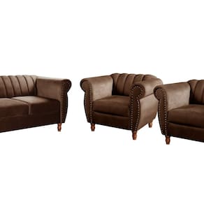 Conjunto Realeza Sofá com Poltronas Chesterfield Decoração Marrom