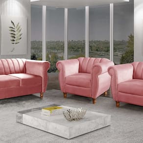 É necessário que haja uma ou mais pessoas no local para receber, desembalar, e conferir o produto. Produto Montado: Sim Acompanha Almofadas extras: Não Almofada do assento: Removível Almofada do encosto: Não Possui Altura do assento até o chão: 45.0000 Altura do Encosto: 80 cm Ambiente Principal: Sala de Estar codigo_ean: 7909903799932 Complexidade da Montagem: Baixa: pode ser montado por uma pessoa sozinha Cor: Rosa Cor do Produto: Rosa Estilo de Braço: Braços Redondos Informações Complementares: 120Kg por acento Itens Inclusos: 1 Sofá 2 Lugares Realeza + 2 Poltronas 1 Lugar + Pés Necessita Montagem: Sim Origem do Produto: Nacional Peso: 50 kg Pet Friendly: Não Possui Percintas Elásticas: Sim Possui Pés: 04 Possui Rodízio: Não Quantidade de Itens: 3 Recomendações de Uso, Manutenção e Limpeza: Limpeza e cuidados: pode ser utilizado aspirador de pó, escova com cerdas macias ou limpeza a seco. Não utilizar produtos químicos, abrasivos ou limpeza a vapor. Evitar exposição prolongada ao sol. Sistema de Montagem: Fixar os Pés Suporta Até (kg): 120 kg Tecido Predominante: Suede Tipo de Encosto: Fixo Tipo de Mola: Molas Ensacadas (Molas ensacadas)