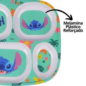 Kit Refeição Infantil Melamina Stitch Disney 7 Peças