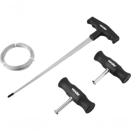 1 Conjunto com 4 peças, sendo: 2 manípulos puxadores, 1 rolo de cordoalha com 22 metros, 1 passador/furador.
