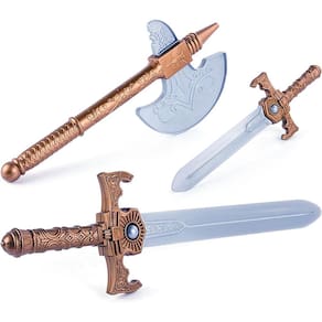 - RPG: Este conjunto de jogo criativo inclui: Toy Combat Swords, Axe, Gauntlet, Chest Plate, Helmet, Shields e Shin Guards. Tudo o que um pequeno cavaleiro precisa para realizar ações nobres e garantir horas intermináveis de diversão em missões e batalhas heróicas.