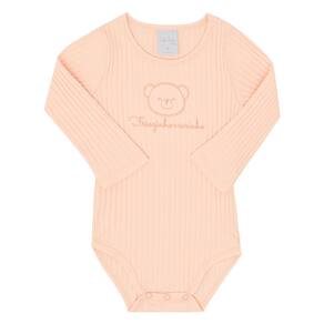 Conjunto em malha canelada na cor rosa pó que transmite conforto e delicadeza no lookinho! Composto pelo body de manga longa com aplique bordado de ursinho na parte da frente da peça, possuí detalhe com botões de pressão entre as pernas para melhorar a facilidade na hora da troca. A calça consta com elastano na cintura e também detalhe de aplique bordado de urso na parte das costas. Sua fofurinha vai amar esse conjunto.\n