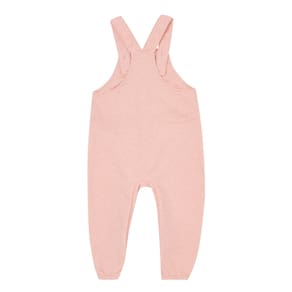 Conjunto Baby com Blusa canelada na cor rosa pó e Jardineira na cor rosê. A jardineira possuí fechamento com alças de botões e aplique termocolante de ursinho na frente da peça. Para melhor conforto e segurança na hora troca possuí abertura entre as pernas com fechamento em botões de pressão, facilitando assim a hora e o dia a a dia das mamães! \n