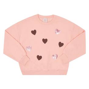 Conjunto ideal para visitar a prima e curtirem a tarde juntas. Com o blusão na cor rosê em moletinho, possuí elastano nas mangas para maior conforto e aplique frontal bordado de corações em paetê. A legging em malha térmica na cor pinhão permite que sua pequena possa correr, pular e se divertir a vontade sem medo, sem passar frio e com segurança.\n