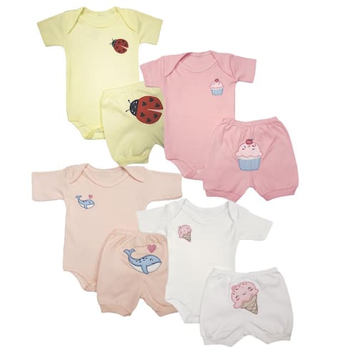 Conjunto Roupas Bebê Body Curto e Short Bordado Menino e Menina