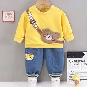 Conjunto Roupa Moletom Infantil Urso Jeans