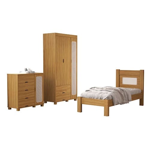 O Conjunto Roupeiro/Cômoda/Cama De Solteiro Clara - VJ Móveis é ideal para deixar sua decoração linda e charmosa, além de ser perfeito para agregar a organização do ambiente. Confeccionado com materiais de excelente qualidade que garantem durabilidade e resistência aos móveis. Lindo e funcional, é o conjunto certo para a sua casa!Dimensões do Roupeiro Montado:Altura: 165cmLargura: 89cmProfundidade: 40cmDimensões da Cômoda Montado:Altura: 80cmLargura: 80,5cmProfundidade: 36,5cmDimensões da Cama de Solteiro Montado:Altura: 117cmLargura: 95cmProfundidade: 199cmObservações Da Cômoda:– Corrediças telescópicas– 4 gavetas profundas– 1 porta– Pés em madeiraObservações Da Cama:– Ideal para colchões de 1900x1400mm– Peso suportado de 110kg distribuídos sem impacto– Estrado reforçadoObservações Do Roupeiro:– Corrediças telescópicas– 2 gavetas profundas– 1 cabideiro– 3 portasMarca: VJ MóveisModelo: ClaraReferência: 402383102383122383ATENÇÃO: Não nos responsabilizamos pela montagem deste produto. Aconselhamos a contratação de um profissional.