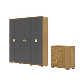 Conjunto Roupeiro E Cômoda Sapatelira China Nature Alasca - Marrom