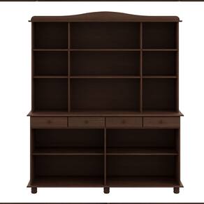 Conjunto Rubi: Cristaleira, Balcão 4 Portas, Mesa 2 Bancos 2 Cadeiras Café Madeira Pinus - Finestra