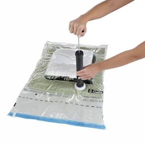 Você poderá guardar roupas que não utilizada em determinadas estações, roupas de cama e até mesmo objetos e acessórios reduzindo facilmente o volume das peças em até 5x.