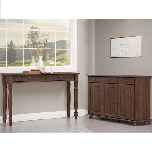Conjunto Sala: Balcão 3 Portas 3 Gavetas e Aparador 2 Gavetas Rubi Café Madeira Pinus - Finestra