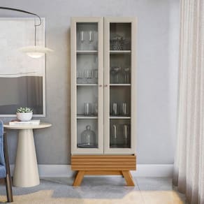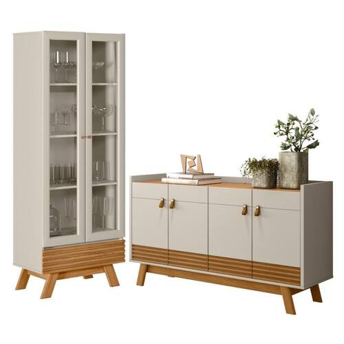 A Cristaleira é feita em MDP/MDF, conta ainda com quatro prateleiras em MDP com espessura de 15mm