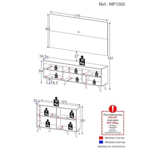 Painel TV - Altura: 90 cm | Largura: 175 cm | Profundidade: 2,5 cm