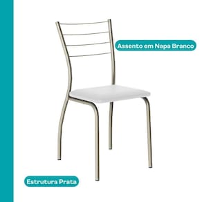 Altura das cadeiras (cm): 84,5 cm | Estado de Origem: RS | Cor Predominante: Prata | Cor do tampo: Freijó | Cor do assento: Branco | Cor da estrutura: Prata | Peso do produto (kg): 31.62 | Fabricante: Móveis Carraro | Marca: Móveis Carraro | Profundidade das cadeiras (cm): 45,5 cm | Quantidade de cadeiras: 4 | Largura das cadeiras (cm): 39 cm | Altura da mesa (cm): 76,5 cm | Comnto da mesa (cm): 100 cm | Material das cadeiras: Metal | Modelo: Bogotá | Requer montagem: Sim | Formato da mesa: Redonda | Largura da mesa (cm): 100 cm | Material da mesa: MDP | Altura do produto (cm): 84,5 cm | Largura do produto (cm): 100 cm | Profundidade do produto (cm): 100 cm | Produto: Conjunto de Mesa e Cadeira | Nome Simples no Fornecedor: Conjunto Sala de Jantar 4 Cadeiras Bogotá Carraro Branco Prata | Instruções/Cuidados: Limpeza com pano seco. | Conteúdo da Embalagem: 1 Mesa e 4 Cadeiras | Peso do Produto com Embalagem (kg): 31,62 kg | Altura do Produto com Embalagem (cm): 77 | Largura do Produto com Embalagem (cm): 65 | Comnto do Produto com Embalagem (cm): 70 cm | Descrição do Tamanho: 84,5 cm x 100 x 100 | PrazoExp: 2 | Material para Filtro: Metal | Tipo de Produto: Doméstico | Número de Itens: 5 | Assembly Required: Sim | Included Components: Mesa e Cadeiras | External Certification: Não Aplicável | Frágil: Sim | Bullet Point 0: Cadeiras com assento estofado em MDP e design curvilíneo moderno. | Bullet Point 1: Fabricadas em tubos de aço e pintura epóxi, suportam até 100kg. | Bullet Point 2: Acompanha sapatas que protegem o piso e evitam ruídos. | supplier_declared_dg_hz_regulation: Não Aplicável | Bullet Point 3: A mesa possui tampo em MDP de 25mm e estrutura em aço. | Bullet Point 4: Possui linhas simples que trazem modernidade e harmonia ao ambiente. | Model Number: 1 | number_of_boxes: 4 | part_number: 1 | batteries_required: não