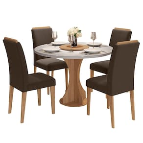 Detalhes Técnicos das Cadeiras -Assento e Encosto Tapeçados, Estofados e Fixos -Cadeira suporta até 90KG -Facilidade Montagem:Média -Tonalidade Cadeira:Cinamomo/Suede Marrom -Espuma Assento:D16 -Espuma Encosto:D14 -Pintura UV Texturizada -Material Estrutura:MDF 25/18mm -Medida da Cadeira:97CMx44CMx50CM