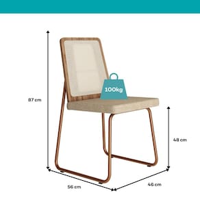 Especificações Cadeira: Medidas: Largura: 46cm | Altura: 87cm | Profundidade: 56cm Altura até o assento: 48cm Peso: 14,5Kg