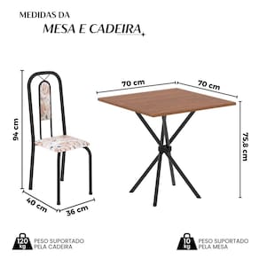 Quer deixar sua casa completa e prática? Uma dica bacana de como transformar o seu lar, deixando-o mais receptivo e bonito? Então você precisa de móveis indispensáveis para deixar seu lar muito mais aconchegante, receptivo e sempre disponível para receber a visita de amigos, familiares e convidados. Você vai se apaixonar por este incrível e moderno Conjunto de Mesa com 4 Cadeiras. Ideal para cozinha, ele é a melhor opção para completar o espaço que você desejar. Aproveite!! Medida da Mesa (A x L x P): 75,8 cm x 70cm x 70 cm Peso da Mesa: 9,6 kg Mesa suporta até: 10.0000 Acabamento da Cadeira/Banco: Pintura Texturizada Acabamento da Mesa: Pintura Texturizada Ambiente Principal: Cozinha Cadeira/Banco Estofada: Encosto e Assento Estofados Cadeira/Banco estofada: Encosto e Assento Estofados Cadeira/Banco suporta até: 120.0000 codigo_ean: 7900288166395 Complexidade da Montagem: Baixa: pode ser montado por uma pessoa sozinha Cor: Bege / Preto Cor do Produto: Bege / Preto Cor Secundária: Bege De Canto (Canto Alemão): Não Enchimento do Assento: Espuma D-16 Escala de Brilho: Semi-Brilho Espessura do Tampo: 1,5 mm Estrutura do Assento: MDP Formato do Tampo: Quadrado Itens Inclusos: 1 Mesa, 4 Cadeiras, Kit Ferragens e Manual de Montagem Linha ou Coleção: Lívia Manual de Montagem e Instalação: https://product-hub-prd.madeiramadeira.com.br/974578680/documents/18bf45cc-f2b6-4b84-8dc6-89586a7211b12981437352817491518952327.pdf Marca: Soma Móveis Material da Base da Mesa: Aço Material da Estrutura da Cadeira: Aço Material do Tampo: MDF Medida da Cadeira/Banco (A x L x P): 94 cm x 36 cm x 40 cm Medida do Tampo (L x C x E): 70cm x 70cm x 1,5 cm Mesa Extensível: Não Necessita Montagem: Sim Origem do Produto: Nacional Peso da Cadeira/Banco: 2,28 kg Possui Apoio Para os Pés: Não Possui Suporte Giratório: Não Quantidade de Cadeiras: 4 Quantidade de Lugares: 04 Recomendações de Uso, Manutenção e Limpeza: Não permitir que molhe os pés da base, usar um pano de tecido macio e seco, evitar detergentes, alvejantes e produtos químicos de limpeza; no tampo usar tecido macio levemente umedecido. Revestimento da Cadeira/Banco: Couro Ecológico Sistema de Montagem: Parafusos Marca: Não Informado
