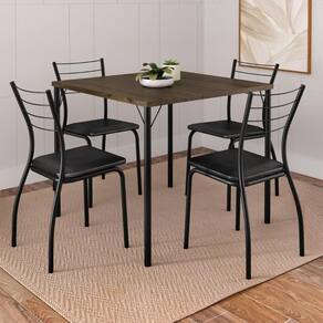 Altura das cadeiras (cm): 84,5 cm | Estado de Origem: RS | Cor Predominante: Preto | Cor do tampo: Legno | Cor do assento: Preto | Cor da estrutura: Preto | Peso do produto (kg): 30.26 | Fabricante: Móveis Carraro | Marca: Móveis Carraro | Profundidade das cadeiras (cm): 45,5 cm | Quantidade de cadeiras: 4 | Largura das cadeiras (cm): 39 cm | Altura da mesa (cm): 76,5 cm | Comnto da mesa (cm): 87,5 cm | Material das cadeiras: Metal | Modelo: Marbella | Requer montagem: Sim | Formato da mesa: Quadrada | Largura da mesa (cm): 87,5 cm | Material da mesa: MDP | Altura do produto (cm): 84,5 cm | Largura do produto (cm): 87,5 cm | Profundidade do produto (cm): 87,5 cm | Produto: Conjunto de Mesa e Cadeira | Nome Simples no Fornecedor: Conjunto Sala de Jantar 4 Cadeiras Marbella Carraro Legno Preto | Instruções/Cuidados: Limpeza com pano seco. | Conteúdo da Embalagem: 1 Mesa e 4 Cadeiras | Peso do Produto com Embalagem (kg): 30,26 kg | Altura do Produto com Embalagem (cm): 76 | Largura do Produto com Embalagem (cm): 63 | Comnto do Produto com Embalagem (cm): 70 | Descrição do Tamanho: 84,5 cm x 87,5 cm x 87,5 cm | PrazoExp: 2 | Material para Filtro: Metal | Tipo de Produto: Doméstico | Número de Itens: 5 | Assembly Required: Sim | Included Components: Mesa e Cadeiras | External Certification: Não Aplicável | Frágil: Sim | Bullet Point 0: Cadeiras com assento estofado e design curvilíneo moderno. | Bullet Point 1: Estrutura em tubos de aço e pintura epóxi. | Bullet Point 2: Acompanha sapatas que protegem o piso e evitam ruídos. | supplier_declared_dg_hz_regulation: Não Aplicável | Bullet Point 3: Cadeiras suportam até 100 kg e a mesa até 30 kg. | Bullet Point 4: Tampo em MDP 25mm. | Model Number: 1 | number_of_boxes: 4 | part_number: 1 | batteries_required: não