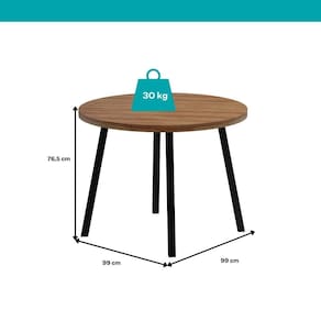 Medidas: Largura: 99 cm | Altura: 76,5 cm | Profundidade: 99 cm Peso: 19,90 Kg Tampo: BP 40mm Estrutura: Tubo de Aço 40x40mm