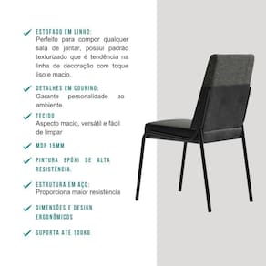O Conjunto San Lorenzo traz modernidade para a sua sala de jantar, deixando o ambiente agradável e combinando com a sua decoração já existente. As cadeiras, com seu encosto anatomicamente moldado, garantem um conforto e ergonomia. Ao combinar com a mesa, o tampo de madeira proporciona sensação de leveza e com a natureza, deixando o ambiente ainda mais agradável. Com materiais de proteção, tanto cadeiras quanto a mesa possuem ponteira plástica e são produzidas com estrutura de tubo de aço, proporcionando muito mais resistência.