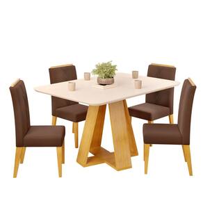Conjunto Sala de Jantar 4 Cadeiras Tampo Chanfrado Retangular 120cm com Vidro Kiara Cedro Off White Yasmin Veludo Moca - DJ Móveis