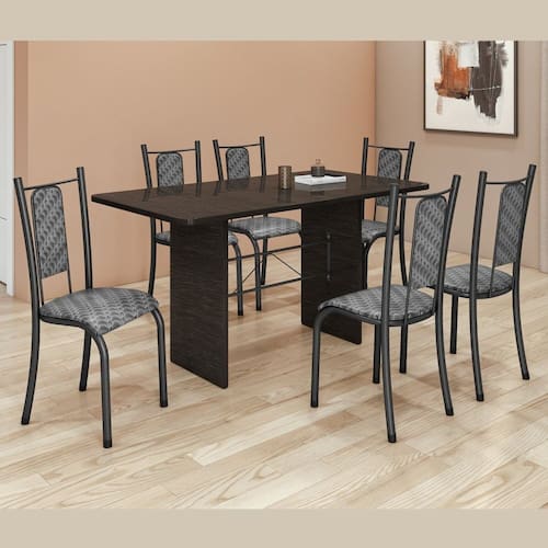 Este sofisticado conjunto de mesa inclui 6 cadeiras tubulares, combinando um design moderno com conforto. A mesa apresenta tampo e base em ardósia indiana, oferecendo uma estética elegante e durabilidade superior. Ideal para criar um ambiente refinado e acolhedor, este conjunto é perfeito para refeições e encontros especiais, harmonizando o charme rústico da ardósia com a praticidade e estilo das cadeiras tubulares. Medida da Mesa (A x L x P): 76,8X140X75cm Peso da Mesa: 93,19 kg Mesa suporta até: 10 kg Acabamento da Cadeira/Banco: Pintura Texturizada Acabamento da Mesa: Pintura Texturizada Ambiente Principal: Sala de Jantar Cadeira/Banco estofada: Encosto e Assento Estofados Cadeira/Banco suporta até: 120 kg Complexidade da Montagem: Baixa: pode ser montado por uma pessoa sozinha Cor: Martelado Prata / Onda Cor do Produto: Martelado Prata / Onda Cor Secundária: Cinza De Canto (Canto Alemão): Não Enchimento do Assento: Espuma D-12 Escala de Brilho: Semi-Fosco Espessura do Tampo: 20 mm Estrutura do Assento: MDP de 15 mm, espuma 1,2 mm, courino. Formato do Tampo: Retangular Itens Inclusos: 1 Mesa, 6 Cadeiras, Manual de montagem e Kit ferragens. Manual de Montagem e Instalação: https://product-hub-prd.madeiramadeira.com.br/937907/documents/b8bf62b4-d02c-4413-a3db-532bea3930a02286262352817250453886395.pdf Material da Base da Mesa: Granito Material da Estrutura da Cadeira: Aço Material do Tampo: Ardósia Medida da Cadeira/Banco (A x L x P): 100X39X48cm Medida do Tampo (L x C x E): 140x75x2 Mesa Extensível: Não Necessita Montagem: Sim Origem do Produto: Nacional Peso da Cadeira/Banco: 4,58 kg Possui Apoio Para os Pés: Não Quantidade de Lugares: 06 Recomendações de Uso, Manutenção e Limpeza: Limpar com pano levemente umedecido, não utilizar solventes nem produtos de limpeza. Revestimento da Cadeira/Banco: Courino Sistema de Montagem: Parafusos Marca: Tubulares Paonanda