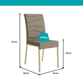Especificações da Cadeira: Medidas totais: Largura: 43 cm | Altura: 97 cm | Profundidade: 60 cm Peso total (06 unidades): 45,6 Kg