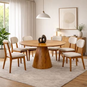 Conjunto Sala de Jantar 6 Lugares Lara Mesa Redonda 135cm e 6 Cadeiras Madeira Macica Moveis Mundial - Creme | Bege
