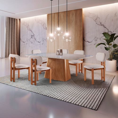 Conjunto Sala de Jantar 6 Lugares Lotus ? Mesa e Cadeiras Madeira Maciça Linho Cinza Prata Exclusividade de Fábrica Mesa Com 6 Cadeiras - Móveis Mix. Com os Produtos Móveis Mix Você Leva Conforto e Beleza Para o Seu Lar. Design Moderno e Sofisticado.