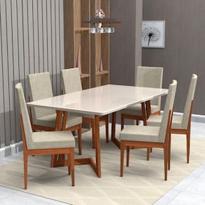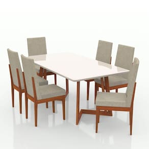 A Cadeira Dakota é puro estilo e qualidade. Sua estrutura é produzida com 100% de madeira de eucalipto, seu encosto com curvatura oferece muito mais conforto e beleza, sem contar na qualidade e toque macio dos tecidos. Medida da Mesa (A x L x P): 77cm x 90cm x 160cm Peso da Mesa: 50 Mesa suporta até: 100 Acabamento da Cadeira/Banco: Pintura UV Acabamento da Mesa: Pintura UV Almofada do assento: Fixa Altura do Conjunto: 77 Ambiente Principal: Sala de Jantar Apoio para Braços Estofado: Cadeira/Banco estofada: Encosto e Assento Estofados Cadeira/Banco suporta até: 150 Complexidade da Montagem: Baixa: pode ser montado por uma pessoa sozinha Cor: Caramelo Cor da Base: Marrom Cor do Produto: Caramelo Cor do Tampo: Branco Cor Flex: Cor Secundária: Marrom De Canto (Canto Alemão): Não Design da Base: Tripé Enchimento do Assento: Espuma D-23 Enchimento do Encosto: Espuma D-18 Escala de Brilho: Brilhante Espessura do Tampo: 25 Espessura do Vidro: mm Estrutura do Assento: Espuma de 6cm com chapa de compensado Estrutura do Encosto: Espuma de 6cm com chapa de compensado Formato do Tampo: Retangular Informações Complementares: Itens Inclusos: 1 Mesa com 6 Cadeiras, kit de ferragem e manual de montagem Linha ou Coleção: Manual de Especificação Técnica: Manual de Montagem e Instalação: https://cdn2.madeiramadeira.com.br/atributo/moveis-meneghetti/926999-manual-mesa-california-1600-cadeira-dakota.pdf Material da Base da Mesa: Madeira Maciça Material da Estrutura da Cadeira: Madeira Maciça Material do Tampo: Vidro/MDF Medida da Base (A x L x P): Medida da Cadeira/Banco (A x L x P): 100cm x 43cm x 55cm Medida do Canto Alemão (A x L x P): Medida do Suporte Giratório (L x C x E): Medida do Tampo (L x C x E): 90cm x 160cm x 2,9cm Mesa Extensível: Não Montagem Flex: Necessita Montagem: Sim Origem do Produto: Nacional Peso da Cadeira/Banco: 8.800000000000001 Possui Apoio para Braços: Não Possui Apoio Para os Pés: Não Possui Suporte Giratório: Não Quantidade de Lugares: 06 Recomendações de Uso, Manutenção e Limpeza: Limpar com pano seco e limpo. Revestimento da Cadeira/Banco: Linho Sistema de Montagem: Parafusos, Cavilhas Tamanho: Tipo de Madeira Maciça da Base da Mesa: Eucalipto Tipo de Madeira Maciça do Tampo: Vidro Temperado: Não