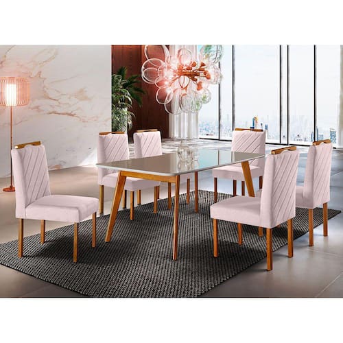 Conjunto Sala de Jantar 6 Lugares Mesa Slim e 6 Cadeiras em Linho Rustico Móveis Mix Exclusividade de fábrica mesa com 6 cadeiras móveis mix. Com os produtos móveis mix você leva conforto e beleza para o seu lar. Design moderno e sofisticado.