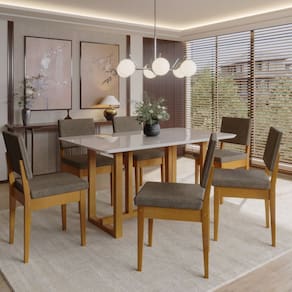 A Cadeira Miami é puro estilo e qualidade. Sua estrutura é produzida com 100% de madeira de eucalipto, sem contar na qualidade e toque macio dos tecidos. Medida da Mesa (A x L x P): 78cm x 160cm x 90cm Peso da Mesa: 49,4 kg Mesa suporta até: 130 kg Acabamento da Cadeira/Banco: Pintura UV Acabamento da Mesa: Pintura UV Acompanha Manual de Instalação: Sim Almofada do assento: Fixa Altura do Conjunto: 78 cm Ambiente Principal: Sala de Jantar Cadeira/Banco Estofada: Encosto e Assento Estofados Cadeira/Banco estofada: Encosto e Assento Estofados Cadeira/Banco suporta até: 130 kg Cadeira/Banco Suporta Até: 130.0000 codigo_ean: 7897904154181 Complexidade da Montagem: Média: pode ser montado por mais de uma pessoa e/ou necessite de maior conhecimento para montagem Configuração do Conjunto: Mesa com Cadeiras Cor: Cerejeira/Grafite/Off White Cor da Base: Laranja Cor das Cadeiras: Laranja Cor do Produto: Cerejeira/Grafite/Off White Cor do Tampo: Off White Cor Secundária: Cinza De Canto (Canto Alemão): Não Design da Base: Quadrado Enchimento do Assento: Espuma D-23 Enchimento do Encosto: Espuma D-23 Escala de Brilho: Brilhante Espessura do Tampo: 25 mm Estrutura do Assento: Espuma Formato do Tampo: Retangular Itens Inclusos: 1 Mesa, 6 Cadeiras, Kit Ferragens e Manual de Montagem Largura do Conjunto: 90 cm Linha ou Coleção: Filadélfia / Miami Manual de Montagem e Instalação: https://product-hub-prd.madeiramadeira.com.br/185333748/documents/9171e541-3928-441e-9c65-484ddf0819643162842528417562364755531.pdf Marca: Móveis Meneghetti Material da Base da Mesa: Madeira Maciça Material da Estrutura da Cadeira: Madeira Maciça Material do Tampo: MDF Material Principal: Madeira Eucalipto Material Principal das Cadeiras/Bancos: Madeira Maciça Medida da Base (A x L x P): 77cm x 51cm x 110cm Medida da Cadeira/Banco (A x L x P): 93cm x 44cm x 54cm Medida do Tampo (L x C x E): 90cm x 160cm x 2,5cm Mesa Dobrável: Não Mesa Extensível: Não Necessita Montagem: Sim Origem do Produto: Nacional Peso da Cadeira/Banco: 7,5 kg Possui Apoio para Braços: Não Possui Apoio Para os Pés: Não Possui Prateleiras: Não Possui Suporte Giratório: Não Possui Vidro: Sim Profundidade do Conjunto: 160 cm Quantidade de Cadeiras: 6 Quantidade de Lugares: 06 Recomendações de Uso, Manutenção e Limpeza: Limpar com pano seco e limpo. Revestimento da Cadeira/Banco: Linho Sistema de Montagem: Parafusos e cavilhas. Tipo de Assento: Fixo Tipo de Encosto: Fixo Tipo de Madeira Maciça da Base da Mesa: Eucalipto Marca: Não Informado