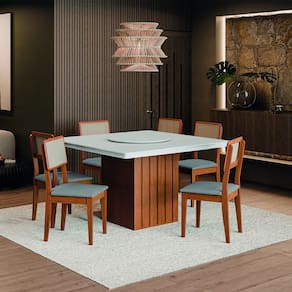 O conjunto de Mesa Amsterdã New com 6 cadeiras Santiago alia charme e sofisticação em um design moderno e funcional. A mesa apresenta um tampo giratório para ajudar nas refeições em MDF de alta resistência, com base ripada que adiciona um toque de elegância. As cadeiras oferecem assento acolchoado e encosto em tela, proporcionando conforto e estilo. Feito com materiais resistentes e fáceis de limpar, este conjunto é perfeito para quem busca estilo, conforto e praticidade em um único produto.