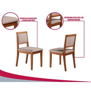 Informações Técnicas Cadeira: Material da Estrutura: Madeira Maciça de Eucaliptus Tratado, 100 Imunizado e Seco em Estufa. Acabamento: Resinado e Envernizado. Assento: Espuma D26 Soft Real. Encosto: Espuma D26 Soft Real. Assento/Pés: Madeira Maciça. Tecido Cadeira: Linho. Cor do Tecido: Areia.
