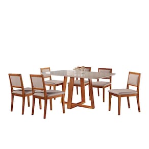 Conjunto Sala de Jantar 6 Lugares Aline ? Mesa e Cadeiras Madeira Maciça Tecido Linho Areia