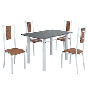 O Conjunto Sala de Jantar Bahia é uma ótima escolha para quem busca combinar estilo e praticidade. Este conjunto apresenta uma mesa retangular com um design elegante e moderno, acompanhada por quatro cadeiras. A mesa tem uma estrutura tubular de 3", que oferece estabilidade ao conjunto. O tampo de madeira MDP grafite não apenas adiciona um toque de sofisticação, mas também oferece durabilidade e resistência às atividades cotidianas. Sua tonalidade grafite é versátil e se adapta facilmente a uma variedade de estilos de decoração. As quatro cadeiras incluídas no conjunto apresentam um design que combina harmoniosamente com a mesa. Seu conforto é garantido pelo estofamento e pelo assento anatômico. O conjunto Bahia se adapta bem a diferentes espaços. Acabamento da Cadeira/Banco: Pintura Texturizada Acabamento da Mesa: Pintura Texturizada Acompanha Manual de Instalação: Sim Almofada do assento: Fixa Ambiente Principal: Sala de Jantar Cadeira/Banco estofada: Sim Cadeira/Banco suporta até: 120 Complexidade da Montagem: Média: pode ser montado por mais de uma pessoa e/ou necessite de maior conhecimento para montagem Cor: Marrom/Branco Cor do Produto: Marrom/Branco Enchimento do Assento: Espuma D-12 Enchimento do Encosto: Espuma D-12 Escala de Brilho: Semi-Fosco Espessura do Tampo: 15 Estrutura do Assento: MDP de 15mm, espuma 1,2mm, courino, ferro 4,5. Estrutura do Encosto: MDP de 15mm, espuma 1,2mm, courino, ferro 4,5. Formato do Tampo: Retangular Itens Inclusos: 1 Mesa, 4 Cadeiras, Kit Ferragens e Manual de Montagem Linha ou Coleção: Bahia Manual de Montagem e Instalação: https://cdn2.madeiramadeira.com.br/atributo/moveis-teixeira/1496142-cadeira-bahia-e-tampo-mdp.pdf Material da Base da Mesa: Aço Material da Estrutura da Cadeira: Aço Material Principal das Cadeiras/Bancos: Aço Medida da Base (A x L x P): 75,5cm x 65cm x 85,5cm Medida da Cadeira/Banco (A x L x P): 100cm x 36cm x 52cm Medida da Mesa (A x L x P): 75cm x 120cm x 75cm Medida do Tampo (L x C x E): 120cm x 75cm x 1,5cm Mesa suporta até: 8 Necessita Montagem: Sim Origem do Produto: Nacional Peso da Cadeira/Banco: 3.04 Peso da Mesa: 16.15 Possui Apoio para Braços: Não Possui Apoio Para os Pés: Não Possui Rodízio: Não Recomendações de Uso, Manutenção e Limpeza: Pano levemente umedecido e pano seco. Não utilizar produtos de limpeza Revestimento da Cadeira/Banco: Courino Sistema de Montagem: Parafusos Ean: 7909903411025