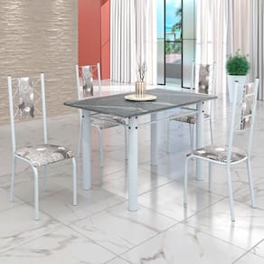 O Conjunto Sala de Jantar Bahia é uma ótima escolha para quem busca combinar estilo e praticidade. Este conjunto apresenta uma mesa retangular com um design elegante e moderno, acompanhada por quatro cadeiras. A mesa tem uma estrutura tubular de 3", que oferece estabilidade ao conjunto. O tampo em pedra granito Topázio oferece uma aparência distinta e refinada. A tonalidade Topázio adiciona um toque de elegância e suavidade ao ambiente, enquanto a pedra granito oferece durabilidade e resistência a riscos e manchas. Essa combinação de cor e resistência resulta em um visual sofisticado e prático, tornando o tampo em pedra granito Topázio uma escolha elegante e duradoura para aprimorar a sua sala de jantar. Acabamento da Cadeira/Banco: Pintura UV Acabamento da Mesa: Pintura UV Acompanha Manual de Instalação: Sim Almofada do assento: Fixa Ambiente Principal: Sala de Jantar Cadeira/Banco estofada: Sim Cadeira/Banco suporta até: 120 Complexidade da Montagem: Média: pode ser montado por mais de uma pessoa e/ou necessite de maior conhecimento para montagem Cor: Paraopeba/Branco Cor do Produto: Paraopeba/Branco De Canto (Canto Alemão): Não Enchimento do Assento: Espuma D-12 Escala de Brilho: Semi-Fosco Espessura do Tampo: 18 Estrutura do Assento: MDP de 15mm, espuma 1,2mm, courino, ferro 4,5. Formato do Tampo: Retangular Itens Inclusos: 1 Mesa, 4 Cadeiras, Kit Ferragens e Manual de Montagem Linha ou Coleção: Bahia Manual de Montagem e Instalação: https://cdn2.madeiramadeira.com.br/atributo/moveis-teixeira/1493896-cadeira-bahia-tampo-pedra.pdf Material da Base da Mesa: Aço Material da Estrutura da Cadeira: Aço Material Principal das Cadeiras/Bancos: Aço Medida da Base (A x L x P): 75,5cm x 65cm x 85,5cm Medida da Cadeira/Banco (A x L x P): 100cm x 36cm x 52cm Medida da Mesa (A x L x P): 75cm x 120cm x 75cm Medida do Tampo (L x C x E): 120cm x 75cm x 1,8cm Mesa suporta até: 8 Necessita Montagem: Sim Origem do Produto: Nacional Peso da Cadeira/Banco: 3.04 Peso da Mesa: 59.05 Possui Apoio para Braços: Não Possui Apoio Para os Pés: Não Possui Rodízio: Não Quantidade de Cadeiras: 4 Recomendações de Uso, Manutenção e Limpeza: Usar um pano de tecido macio e seco, evitar detergentes, alvejantes e produtos químicos de limpeza; no tampo usar tecido macio levemente umedecido. Revestimento da Cadeira/Banco: Courino Sistema de Montagem: Parafusos Tipo de Assento: Fixo Tipo de Encosto: Fixo Ean: 7909903410523