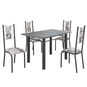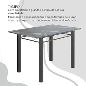 Conjunto Sala de Jantar Bahia Mesa Tubo 120x75cm Tampo Pedra Granito Topázio com 4 Cadeiras Paraopeba/Prata