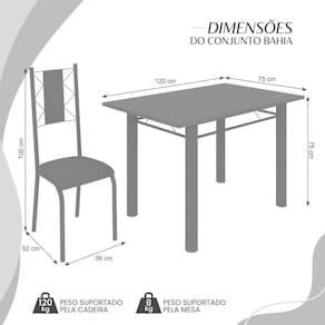 Medida da Mesa (A x L x P): 75cm x 120cm x 75cm