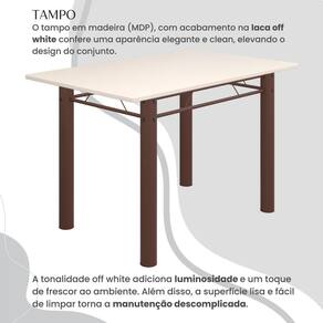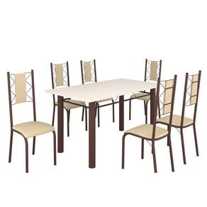 O Conjunto Sala de Jantar Bahia é uma ótima escolha para quem busca combinar estilo e praticidade. Este conjunto apresenta uma mesa retangular com um design elegante e moderno, acompanhada por seis cadeiras. A mesa tem uma estrutura tubular de 3", que oferece estabilidade ao conjunto. O tampo em madeira MDP com acabamento em laca off white oferece um visual elegante e clean. A laca off white confere um toque de luminosidade e sofisticação à superfície, enquanto o MDP a torna adequada para o uso diário. Essa combinação cria um visual contemporâneo e versátil sendo opção prática e estilosa para diversos ambientes. As seis cadeiras incluídas no conjunto apresentam um design que combina harmoniosamente com a mesa. Seu conforto é garantido pelo estofamento e pelo assento anatômico. Acabamento da Cadeira/Banco: Pintura Texturizada Acabamento da Mesa: Pintura Texturizada Acompanha Manual de Instalação: Sim Almofada do assento: Fixa Ambiente Principal: Sala de Jantar Cadeira/Banco estofada: Sim Cadeira/Banco suporta até: 120 Complexidade da Montagem: Média: pode ser montado por mais de uma pessoa e/ou necessite de maior conhecimento para montagem Cor: Creme / Marrom Cor do Produto: Creme / Marrom Enchimento do Assento: Espuma D-12 Escala de Brilho: Semi-Fosco Espessura do Tampo: 15 Estrutura do Assento: Assento em MDP de 15mm c/ courino. Formato do Tampo: Retangular Itens Inclusos: 1 Mesa, 6 Cadeiras, Kit Ferragens e Manual de Montagem Linha ou Coleção: Bahia Manual de Montagem e Instalação: https://cdn2.madeiramadeira.com.br/atributo/moveis-teixeira/1515543-base-3-1-40-mdp.pdf Material da Base da Mesa: Aço Material da Estrutura da Cadeira: Aço Material Principal das Cadeiras/Bancos: Aço Medida da Base (A x L x P): 75,5cm x 65cm x 112cm Medida da Cadeira/Banco (A x L x P): 100cm x 36cm x 52cm Medida da Mesa (A x L x P): 75cm x 140cm x 75cm Medida do Tampo (L x C x E): 140cm x 75cm x 1,5cm Mesa suporta até: 8 Necessita Montagem: Sim Origem do Produto: Nacional Peso da Cadeira/Banco: 3.04 Peso da Mesa: 20.82 Possui Apoio para Braços: Não Possui Apoio Para os Pés: Não Possui Rodízio: Não Possui Suporte Giratório: Não Quantidade de Cadeiras: 6 Recomendações de Uso, Manutenção e Limpeza: Usar um pano de tecido macio e seco, evitar detergentes, alvejantes e produtos químicos de limpeza; no tampo usar tecido macio levemente umedecido. Revestimento da Cadeira/Banco: Courino Sistema de Montagem: Parafusos Tipo de Assento: Fixo Tipo de Encosto: Estofado Ean: 7909903415566