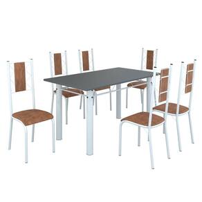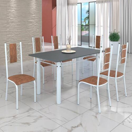 O Conjunto Sala de Jantar Bahia é uma ótima escolha para quem busca combinar estilo e praticidade. Este conjunto apresenta uma mesa retangular com um design elegante e moderno, acompanhada por seis cadeiras. A mesa tem uma estrutura tubular de 3", que oferece estabilidade ao conjunto. O tampo de madeira MDP grafite não apenas adiciona um toque de sofisticação, mas também oferece durabilidade e resistência às atividades cotidianas. Sua tonalidade grafite é versátil e se adapta facilmente a uma variedade de estilos de decoração. As seis cadeiras incluídas no conjunto apresentam um design que combina harmoniosamente com a mesa. Seu conforto é garantido pelo estofamento e pelo assento anatômico. O conjunto Bahia se adapta bem a diferentes espaços. Ideal para receber convidados. Acabamento da Cadeira/Banco: Pintura Texturizada Acabamento da Mesa: Pintura Texturizada Acompanha Manual de Instalação: Sim Almofada do assento: Fixa Ambiente Principal: Sala de Jantar Cadeira/Banco estofada: Sim Cadeira/Banco suporta até: 120 Complexidade da Montagem: Média: pode ser montado por mais de uma pessoa e/ou necessite de maior conhecimento para montagem Cor: Marrom/Branco Cor do Produto: Marrom/Branco Enchimento do Assento: Espuma D-12 Escala de Brilho: Semi-Fosco Espessura do Tampo: 15 Estrutura do Assento: Assento em MDP de 15mm c/ courino. Formato do Tampo: Retangular Itens Inclusos: 1 Mesa, 6 Cadeiras, Kit Ferragens e Manual de Montagem Linha ou Coleção: Bahia Manual de Montagem e Instalação: https://cdn2.madeiramadeira.com.br/atributo/moveis-teixeira/1515500-base-3-1-40-mdp.pdf Material da Base da Mesa: Aço Material da Estrutura da Cadeira: Aço Material Principal das Cadeiras/Bancos: Aço Medida da Base (A x L x P): 75,5cm x 65cm x 112cm Medida da Cadeira/Banco (A x L x P): 100cm x 36cm x 52cm Medida da Mesa (A x L x P): 75cm x 140cm x 75cm Medida do Tampo (L x C x E): 140cm x 75cm x 1,5cm Mesa suporta até: 8 Necessita Montagem: Sim Origem do Produto: Nacional Peso da Cadeira/Banco: 3.04 Peso da Mesa: 20.82 Possui Apoio para Braços: Não Possui Apoio Para os Pés: Não Possui Rodízio: Não Possui Suporte Giratório: Não Quantidade de Cadeiras: 6 Recomendações de Uso, Manutenção e Limpeza: Usar um pano de tecido macio e seco, evitar detergentes, alvejantes e produtos químicos de limpeza; no tampo usar tecido macio levemente umedecido. Revestimento da Cadeira/Banco: Courino Sistema de Montagem: Parafusos Tipo de Assento: Fixo Tipo de Encosto: Estofado Ean: 7909903412206