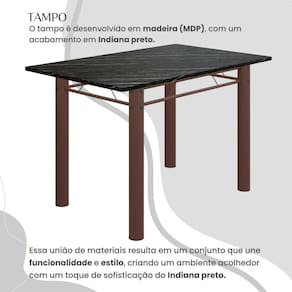 O Conjunto Sala de Jantar Bahia é uma ótima escolha para quem busca combinar estilo e praticidade. Este conjunto apresenta uma mesa retangular com um design elegante e moderno, acompanhada por seis cadeiras. A mesa tem uma estrutura tubular de 3", que oferece estabilidade ao conjunto. O tampo Indiana Preto, feito em madeira MDP, é uma combinação marcante de estética e praticidade. A cor Indiana Preto adiciona um toque de sofisticação e profundidade ao ambiente. O uso de madeira MDP oferece durabilidade e versatilidade, sendo perfeito para o uso cotidiano. As seis cadeiras incluídas no conjunto apresentam um design que combina harmoniosamente com a mesa. Seu conforto é garantido pelo estofamento e pelo assento anatômico. O conjunto Bahia se adapta bem a diferentes espaços.