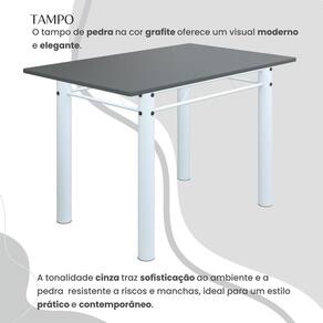 O Conjunto Sala de Jantar Bahia é uma ótima escolha para quem busca combinar estilo e praticidade. Este conjunto apresenta uma mesa retangular com um design elegante e moderno, acompanhada por seis cadeiras. A mesa tem uma estrutura tubular de 3", que oferece estabilidade ao conjunto. O tampo em pedra grafite oferece um visual moderno e sofisticado. A tonalidade do grafite confere elegância e versatilidade ao ambiente, enquanto a pedra proporciona durabilidade e resistência a riscos e manchas. Essa combinação de estética e funcionalidade cria um aspecto contemporâneo e prático, tornando o tampo em pedra grafite uma escolha marcante para adicionar estilo e resistência à sua sala de jantar. As seis cadeiras incluídas no conjunto apresentam um design que combina harmoniosamente com a mesa. Acabamento da Cadeira/Banco: Pintura Texturizada Acabamento da Mesa: Pintura Texturizada Acompanha Manual de Instalação: Sim Almofada do assento: Fixa Ambiente Principal: Sala de Jantar Cadeira/Banco estofada: Sim Cadeira/Banco suporta até: 120 Complexidade da Montagem: Média: pode ser montado por mais de uma pessoa e/ou necessite de maior conhecimento para montagem Cor: Paraopeba/Branco Cor do Produto: Paraopeba/Branco Enchimento do Assento: Espuma D-12 Escala de Brilho: Semi-Fosco Espessura do Tampo: 18 Estrutura do Assento: Assento em MDP de 15mm c/ courino. Formato do Tampo: Retangular Itens Inclusos: 1 Mesa, 6 Cadeiras, Kit Ferragens e Manual de Montagem Linha ou Coleção: Bahia Manual de Montagem e Instalação: https://cdn2.madeiramadeira.com.br/atributo/moveis-teixeira/1515347-base-3-1-40-pedra.pdf Material da Base da Mesa: Aço Material da Estrutura da Cadeira: Aço Material Principal das Cadeiras/Bancos: Aço Medida da Base (A x L x P): 75,5cm x 65cm x 112cm Medida da Cadeira/Banco (A x L x P): 100cm x 36cm x 52cm Medida da Mesa (A x L x P): 75cm x 140cm x 75cm Medida do Tampo (L x C x E): 140cm x 75cm x 1,8cm Mesa suporta até: 8 Necessita Montagem: Sim Origem do Produto: Nacional Peso da Cadeira/Banco: 3.04 Peso da Mesa: 57.4 Possui Apoio para Braços: Não Possui Apoio Para os Pés: Não Possui Rodízio: Não Possui Suporte Giratório: Não Quantidade de Cadeiras: 6 Recomendações de Uso, Manutenção e Limpeza: Usar um pano de tecido macio e seco, evitar detergentes, alvejantes e produtos químicos de limpeza; no tampo usar tecido macio levemente umedecido. Revestimento da Cadeira/Banco: Courino Sistema de Montagem: Parafusos Tipo de Assento: Fixo Tipo de Encosto: Estofado Ean: 7909903412114