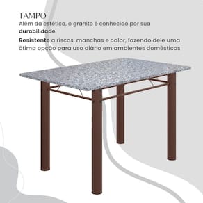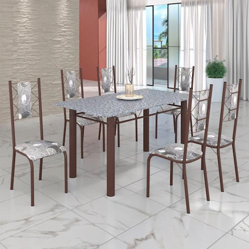 O Conjunto Sala de Jantar Bahia é uma ótima escolha para quem busca combinar estilo e praticidade. Este conjunto apresenta uma mesa retangular com um design elegante e moderno, acompanhada por seis cadeiras. A mesa tem uma estrutura tubular de 3", que oferece estabilidade ao conjunto. O tampo em pedra granito ocre apresenta uma estética sofisticada e acolhedora. A tonalidade ocre adiciona calor e elegância ao ambiente, enquanto a pedra granito oferece durabilidade e resistência a riscos e manchas. Essa combinação de cores marromis e resistência prática resulta em um visual clássico e funcional, tornando o tampo em pedra granito ocre uma ótima escolha para aprimorar sua sala de jantar. As seis cadeiras incluídas no conjunto apresentam um design que combina harmoniosamente com a mesa. Acabamento da Cadeira/Banco: Pintura Texturizada Acabamento da Mesa: Pintura Texturizada Acompanha Manual de Instalação: Sim Almofada do assento: Fixa Ambiente Principal: Sala de Jantar Cadeira/Banco estofada: Sim Cadeira/Banco suporta até: 120 Complexidade da Montagem: Média: pode ser montado por mais de uma pessoa e/ou necessite de maior conhecimento para montagem Cor: Paraopeba/Marrom Cor do Produto: Paraopeba/Marrom Enchimento do Assento: Espuma D-12 Enchimento do Encosto: Espuma D-12 Escala de Brilho: Semi-Fosco Espessura do Tampo: 18 Estrutura do Assento: Assento em MDP de 15mm c/ courino. Estrutura do Encosto: MDP de 15mm, espuma 1,2mm, courino, ferro 4,5. Formato do Tampo: Retangular Itens Inclusos: 1 Mesa, 6 Cadeiras, Kit Ferragens e Manual de Montagem Linha ou Coleção: Bahia Manual de Montagem e Instalação: https://cdn2.madeiramadeira.com.br/atributo/moveis-teixeira/1501212-base-3-1-40-pedra.pdf Material da Base da Mesa: Aço Material da Estrutura da Cadeira: Aço Material Principal das Cadeiras/Bancos: Aço Medida da Base (A x L x P): 75,5cm x 65cm x 112cm Medida da Cadeira/Banco (A x L x P): 100cm x 36cm x 52cm Medida da Mesa (A x L x P): 75cm x 140cm x 75cm Medida do Tampo (L x C x E): 140cm x 75cm x 1,8cm Mesa suporta até: 8 Necessita Montagem: Sim Origem do Produto: Nacional Peso da Cadeira/Banco: 3.04 Peso da Mesa: 64.23999999999999 Possui Apoio para Braços: Não Possui Apoio Para os Pés: Não Possui Rodízio: Não Quantidade de Cadeiras: 6 Recomendações de Uso, Manutenção e Limpeza: Usar um pano de tecido macio e seco, evitar detergentes, alvejantes e produtos químicos de limpeza; no tampo usar tecido macio levemente umedecido. Revestimento da Cadeira/Banco: Courino Sistema de Montagem: Parafusos Tipo de Assento: Fixo Tipo de Encosto: Estofado Ean: 7909903411407