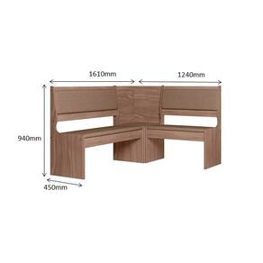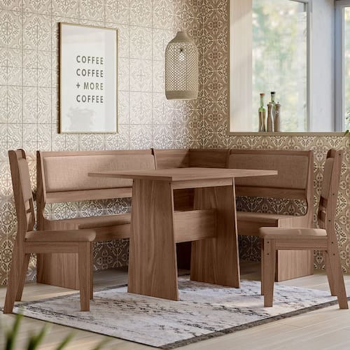 Itens inclusos: 1 mesa (MDF) 1 canto (MDF) com assentos estofados 2 cadeiras (MDF/MDP) com assentos estofados.